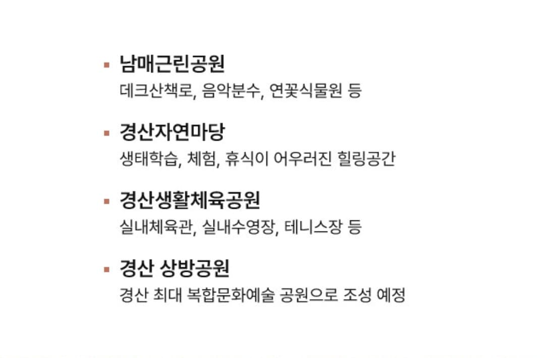 상방공원 내 문화예술회관, 야외공연장, 산책로가 조성되어 365일 쾌적한 숲세권 라이프를 보장합니다.